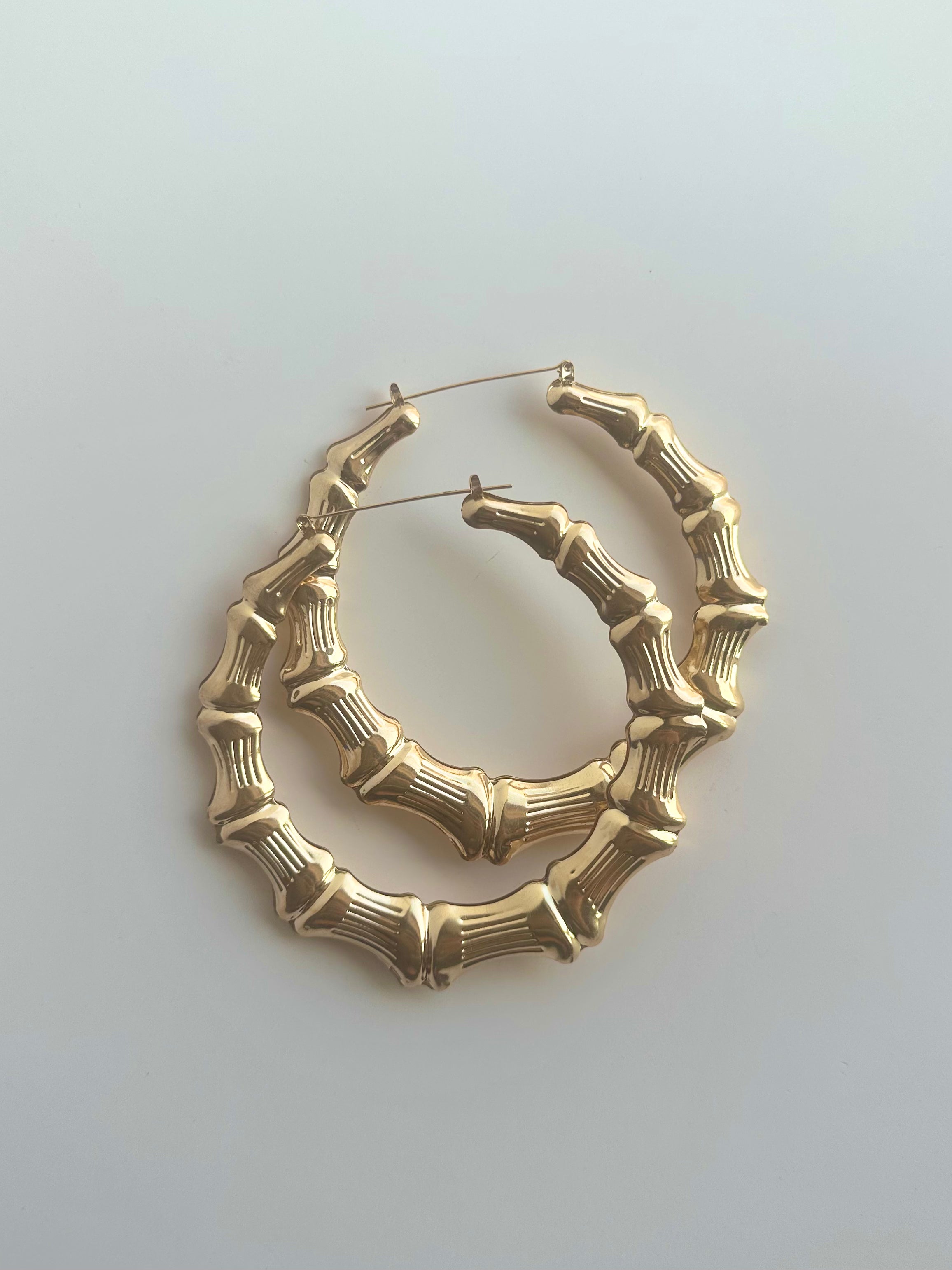 Effortlessly bold with a refined edge, the Bamboo Hoop Earrings - Gold are designed to elevate your everyday look with a touch of soft glamour. Featuring a classic hoop silhouette with a textured, bamboo-inspired finish, these earrings catch the light beautifully with every movement.